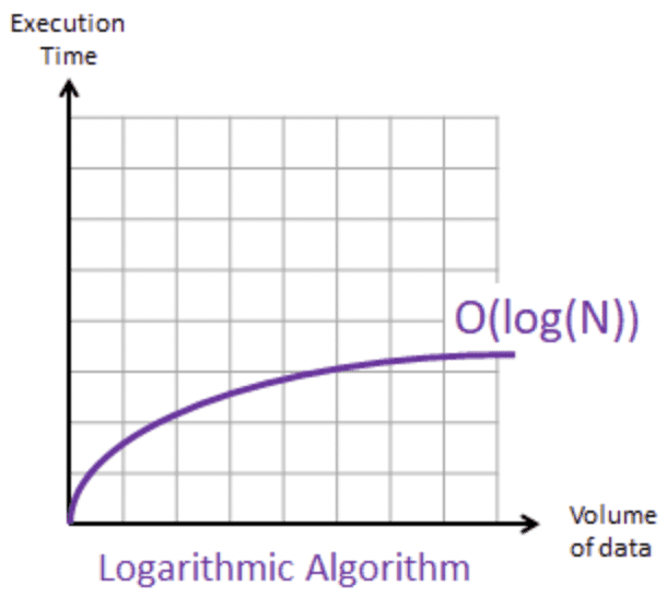 Logarithmic O(log n): The complexity is logarithmic; as the amount of data increases exponentially, time will increase linearly. This means it will take less time to process more items.