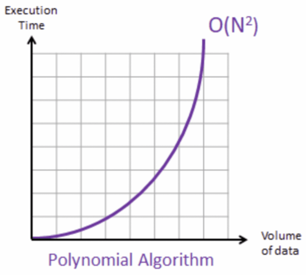 Quadratic O(n^2): The complexity is quadratic and the running time is proportional to the square of the input.