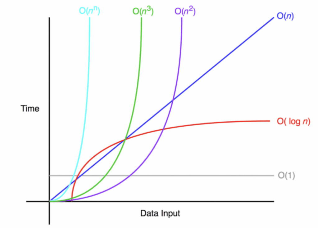 In simple words if we have a function that takes some data as an input Big O will be about how much time will our function take to complete as the input grows.